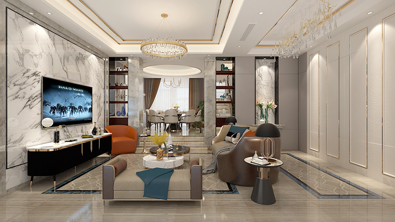 项目名称:闵行区万顺水源墅300㎡公寓-现代轻奢风格