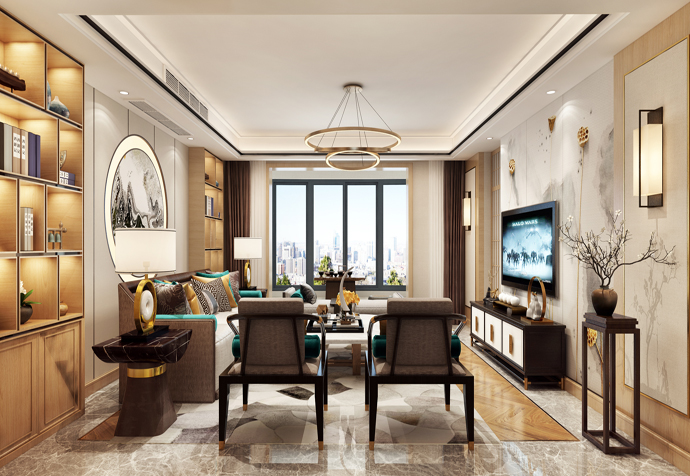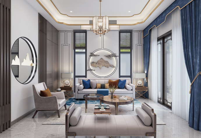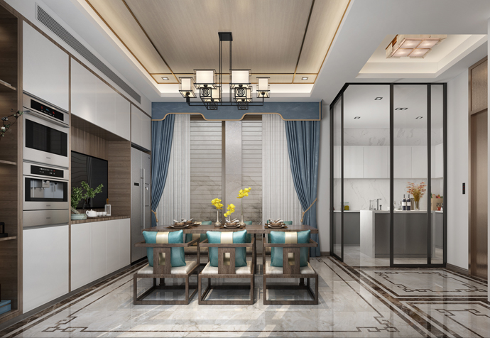 奉贤区泰禾海上院子340㎡别墅新中式风格