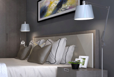 卫生间扩大,原本狭窄拥挤的卫生间也能拥有淋浴房。一进入户门,就会被客餐厅的灰蓝色背景墙所吸引,搭配原木色、高级和清新的碰撞,装饰画等软装的加入,突出了空间亮点。卡...